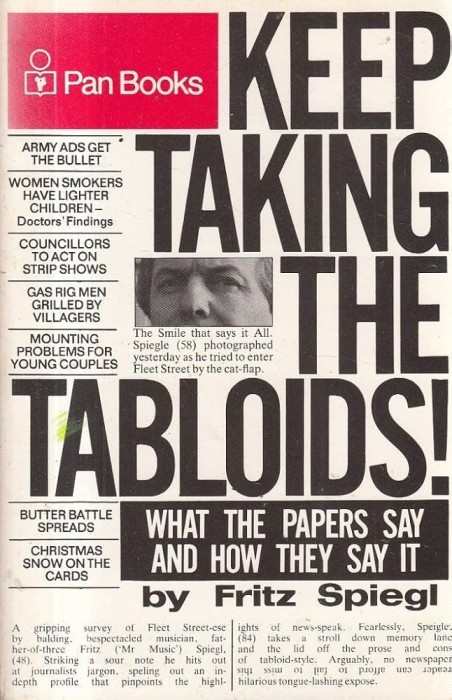 I still have my copy of Fritz Spiegl’s wonderful “Keep Taking the Tabloids”, an invaluable guide to the peculiar language used by the red tops and fascist tabloids posing as respectable (Mail, Express). You can currently pick up a pre-loved copy from Amazon for less than three quid.